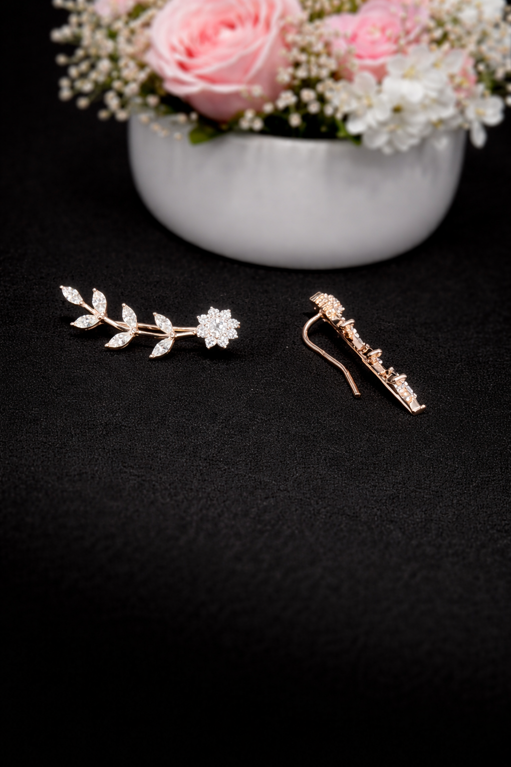 Floral + leaf ear climber design for a naturally graceful look