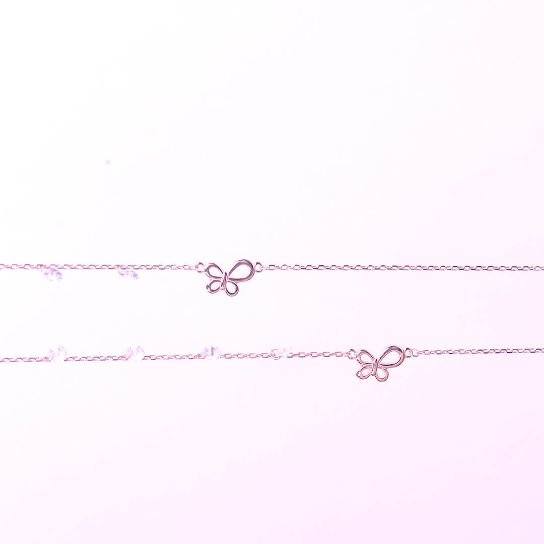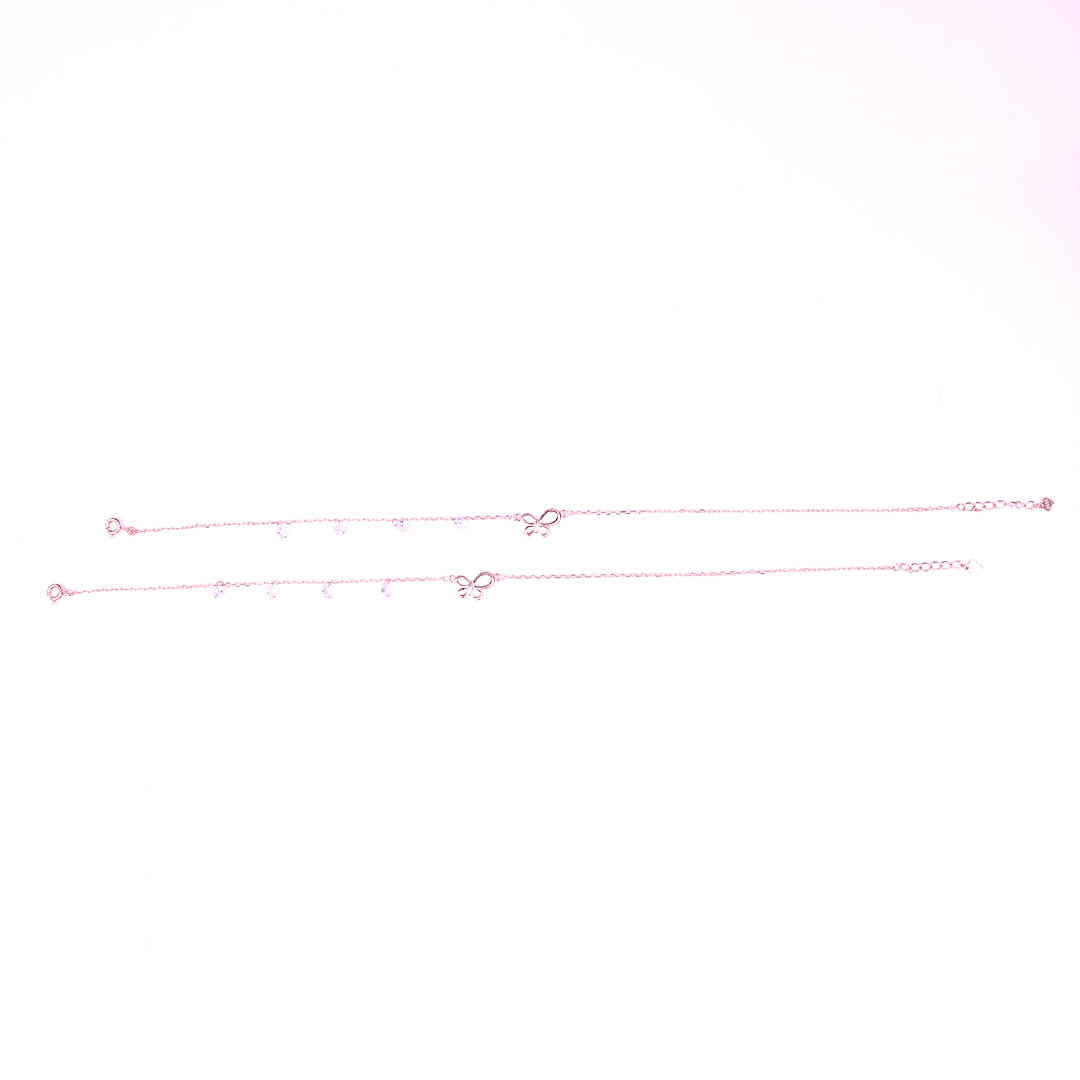 Grace your steps with the Butterfly Charm Silver Anklet Set, crafted in 92.5 sterling silver. Featuring delicate butterfly motifs and dangling charm accents, these anklets add a playful yet elegant touch to your everyday and festive look.