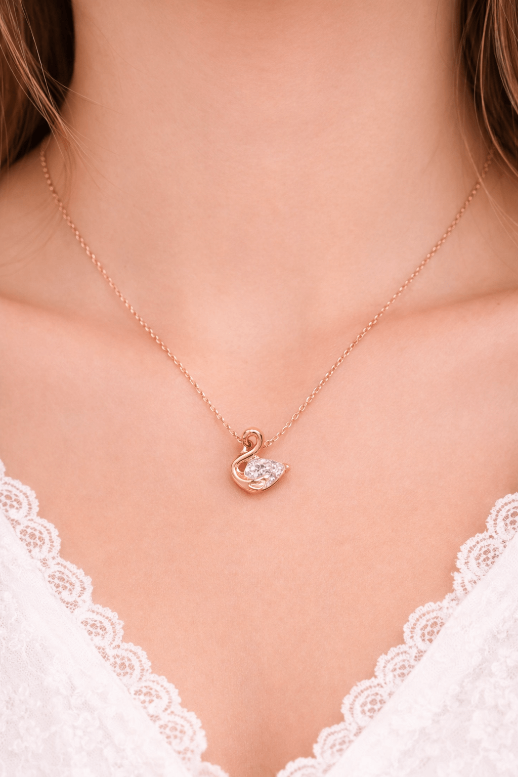 Graceful and elegant, the Crystal Swan Necklace is a symbol of beauty and sophistication. Crafted from premium 92.5 sterling silver and finished with a luxurious rose gold polish, this delicate necklace features a beautifully designed swan pendant adorned with a sparkling crystal that captures light brilliantly.