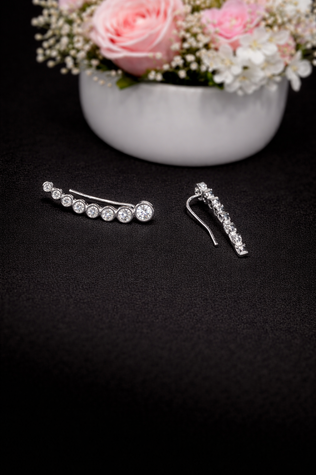Ear climber / earcuff style – sits naturally along the ear line