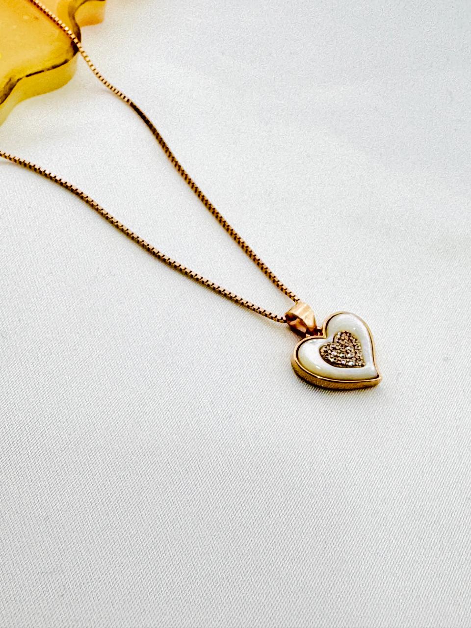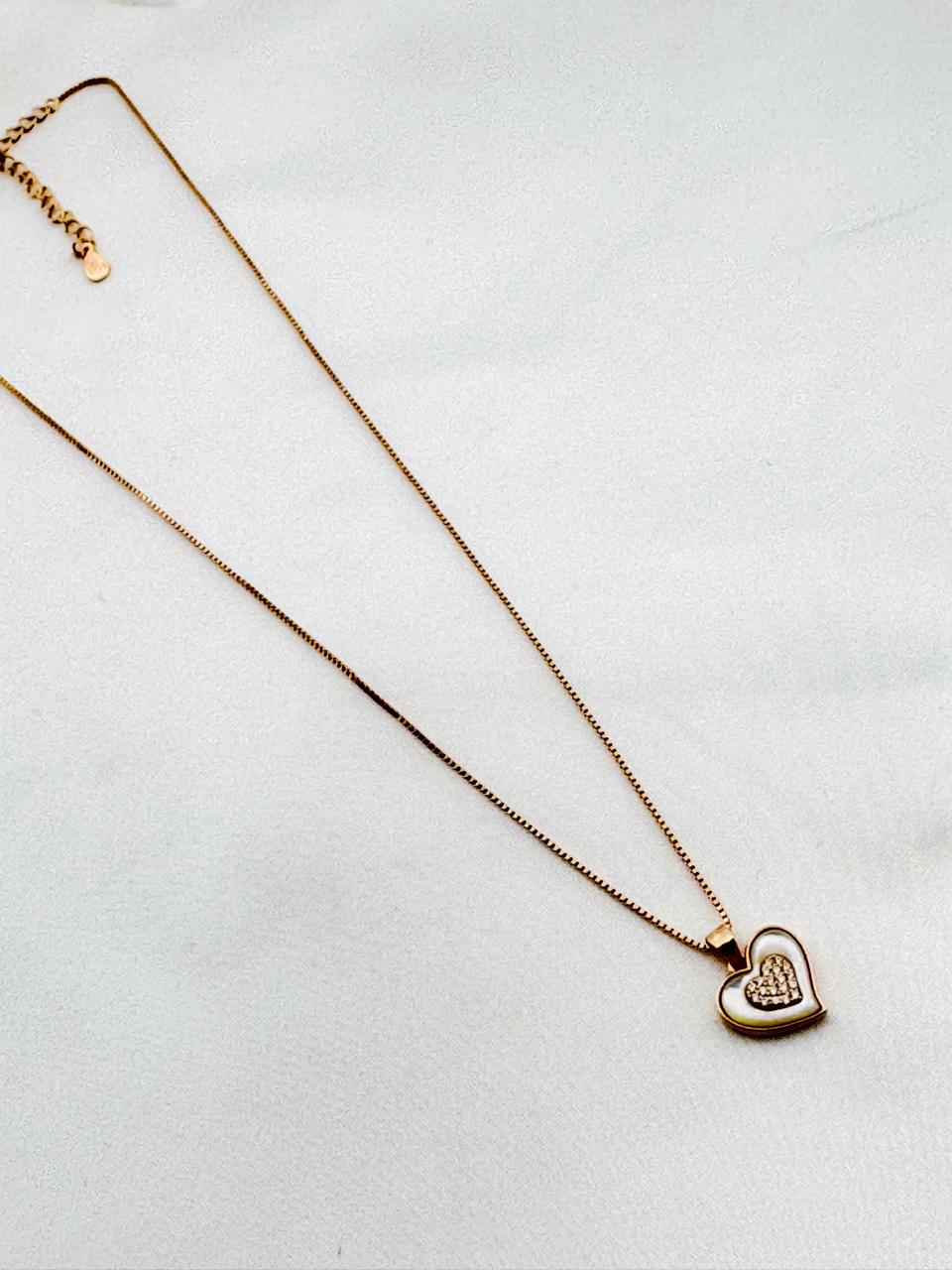 💖 Design: Elegant dual-heart pendant — a crystal-encrusted heart set within a white mother-of-pearl frame.