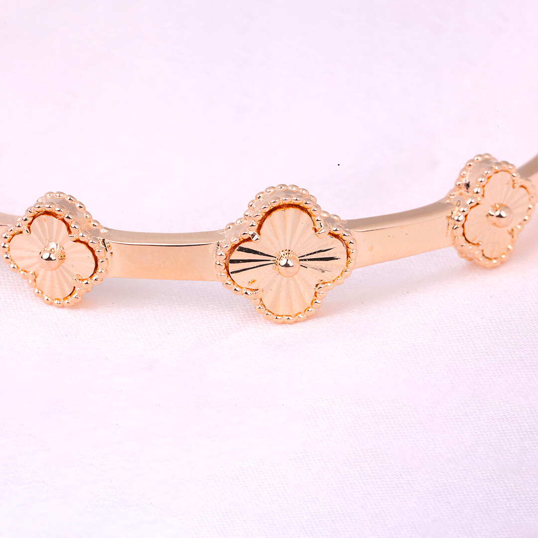 Add timeless charm to your jewellery collection with this Rose Gold Clover Floral Bangle. Featuring an elegant triple clover design with intricate detailing, this bangle beautifully combines luxury with everyday wearability.