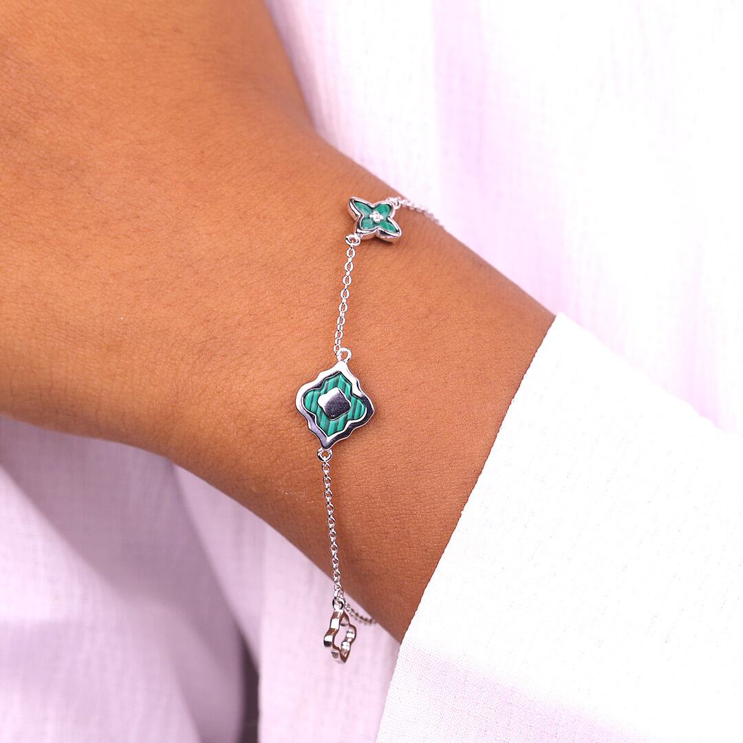 Add a refreshing touch of elegance with this Silver Green Clover Charm Bracelet. Designed with delicate clover motifs accented in green enamel, this fine chain bracelet is lightweight, stylish, and versatile.