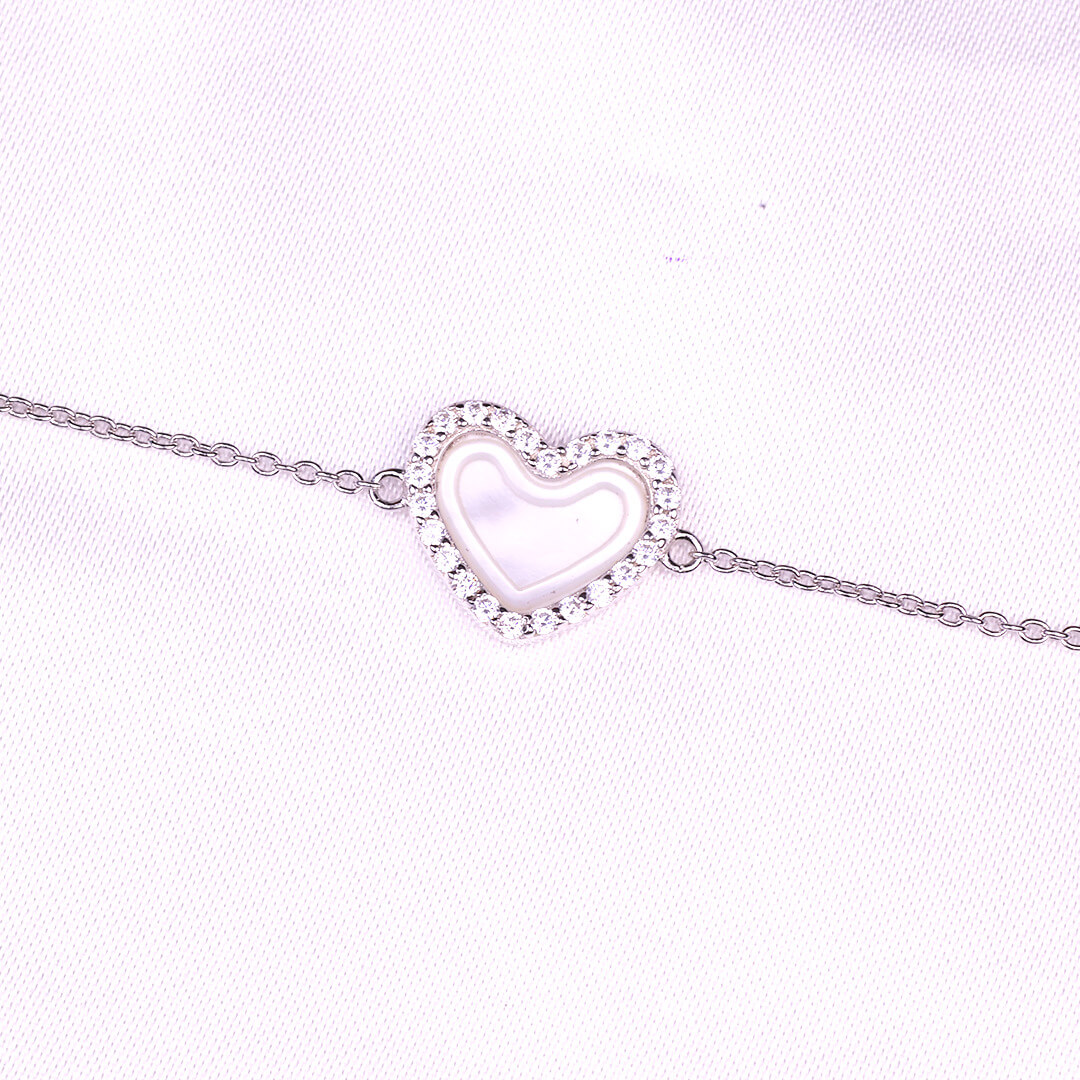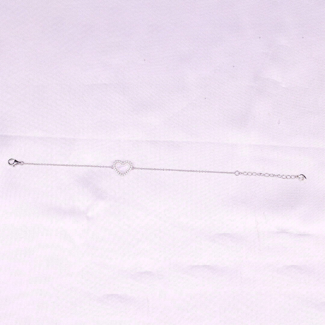 Celebrate love and elegance with this Silver Heart Charm Bracelet. Featuring a delicate open-heart motif adorned with sparkling CZ stones, this bracelet adds a touch of romance to your everyday style. Crafted with a fine silver-polished chain and secured with a sturdy lobster clasp.