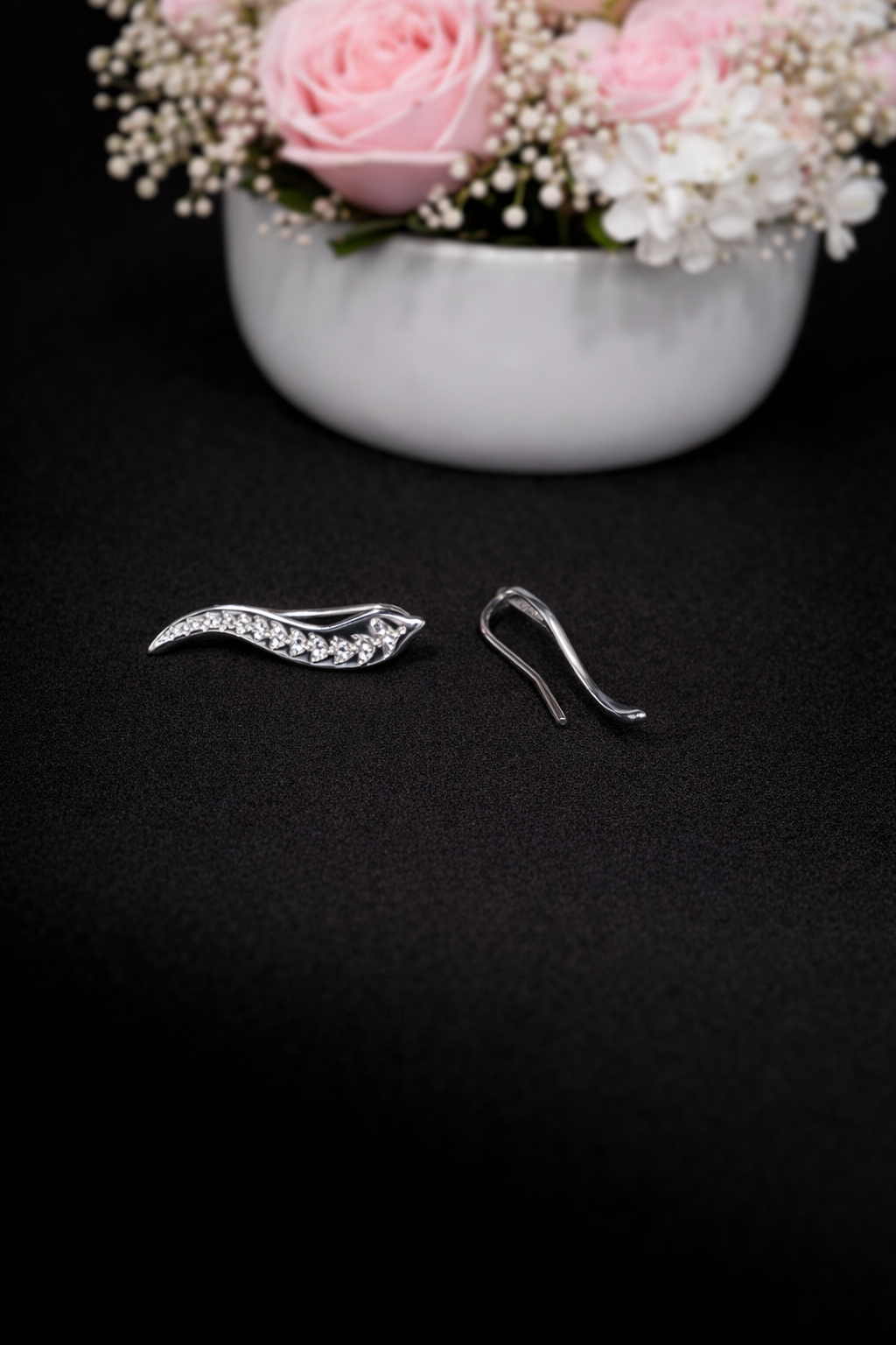 Wing-inspired arc design with pavé CZ stones for elegant sparkle
